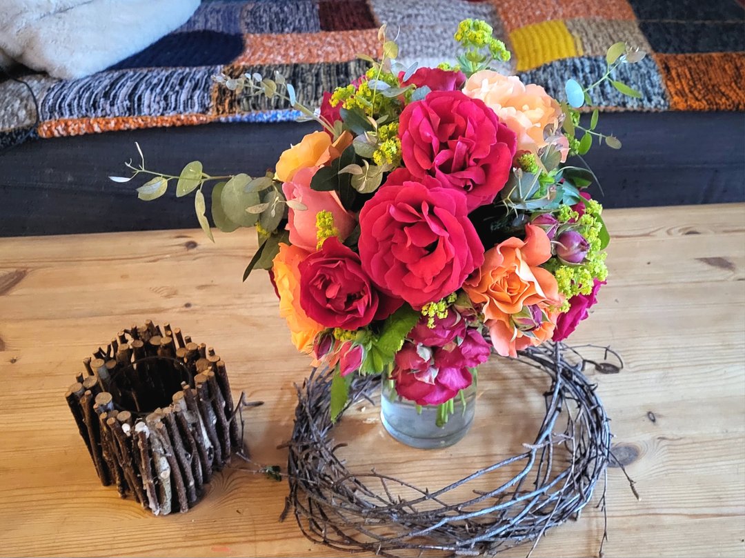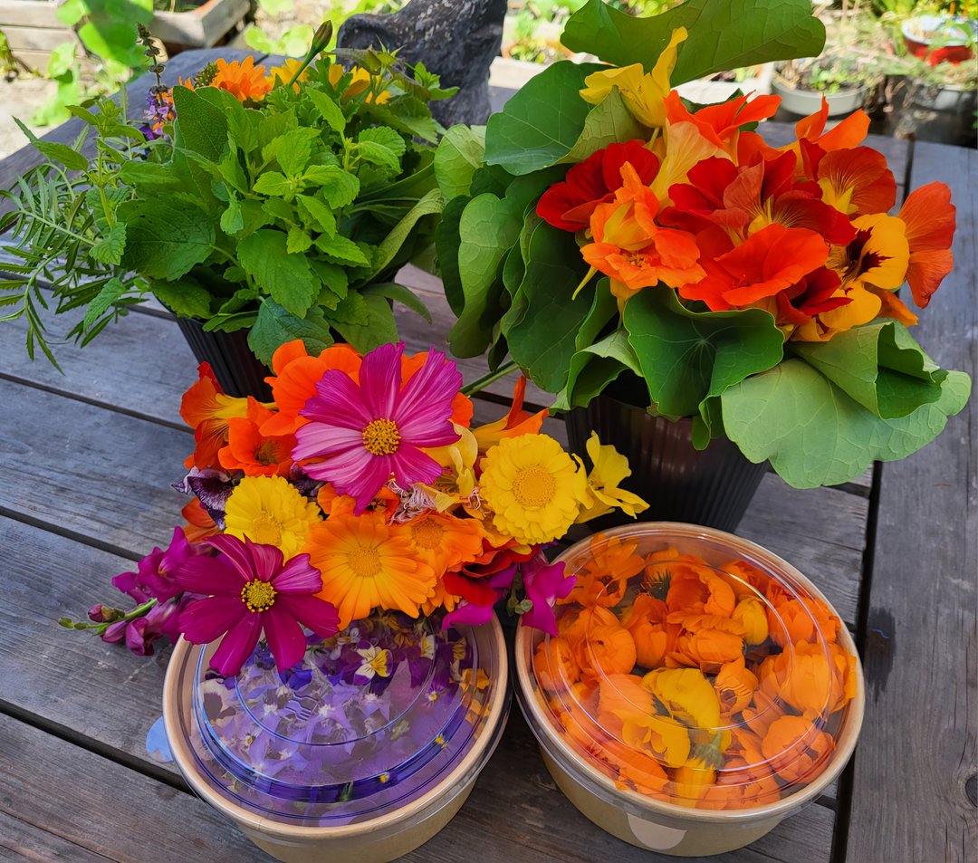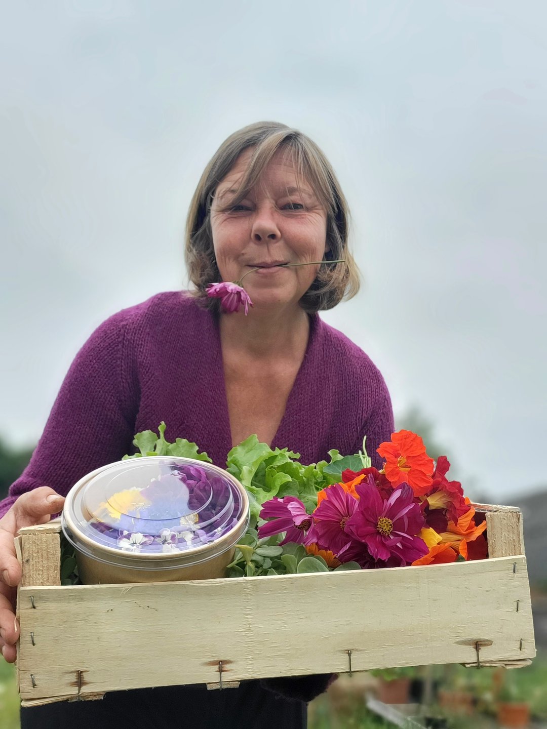 Je propose des 'bouquets comestibles' composé de fleurs comestibles, d’herbes aromatiques classiques et atypiques, que je cultive de façon écologique. Une petite fiche explicative accompagne chaque bouquet. Vous pouvez vous procurer mes fleurs via commande, abonnements, et auto-cueillette (sur rdv). Je fournis également les fleuristes et restaurateurs professionnels. Je propose également une petite gamme de condiments comme du pesto d’ail des ours, du gomasio au orties ou encore du vinaigre aromatisé au fleurs. Bienvenue à mes ateliers de cuisine vitalisante, je vous y transmets avec joie ma créativité et savoirs-faires ou à la formation 'de la fourche à la fourchette'. En automne et hiver je vous initie à la vannerie aléatoire.